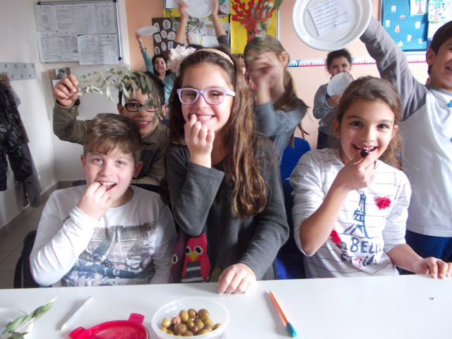 Γνωρίσαμε τη θέση του λαδιού στη θρησκεία μας, το μύθο της Αθηνάς και του Ποσειδώνα (τον οποίο είχαμε δραματοποιήσει στην αρχή της χρονιάς) και είδαμε πίνακα του Θεόφιλου με τη συγκομιδή της ελιάς. Ακόμη, γνωρίσαμε τις ευεργετικές ιδιότητες του λαδιού και το πόσο υγιεινός είναι ο καρπός της ελιάς. Δε διστάσαμε, μάλιστα, να φάμε και νόστιμες ελίτσες. Μελετήσαμε από κοντά κλαδιά της ελιάς και τέλος μάθαμε το ποίημα του Οδυσσέα Ελύτη, το οποίο πήραμε σε ένα πιατάκι με φυλλαράκια ελιάς για να το θυμόμαστε!
