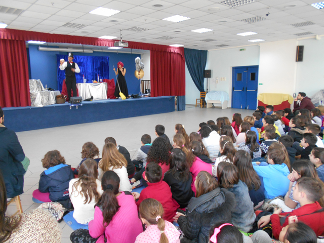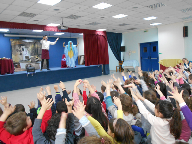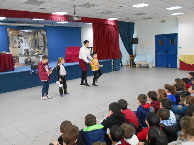 Σήμερα, Παρασκευή 18 Μαρτίου 2016, στο θέατρο του σχολείου μας οι μαθητές της Α’, Β’, Γ’ τάξης παρακολούθησαν την αγγλική θεατρική παράσταση “Cinderello“ και της Δ’ , Ε’ , Στ’ τάξης τη θεατρική παράσταση “Lady Macbeth“ του English Theatre Club, στα πλαίσια μιας πολιτιστικής προσέγγισης της αγγλικής γλώσσας.
