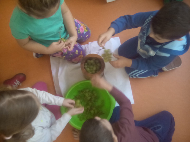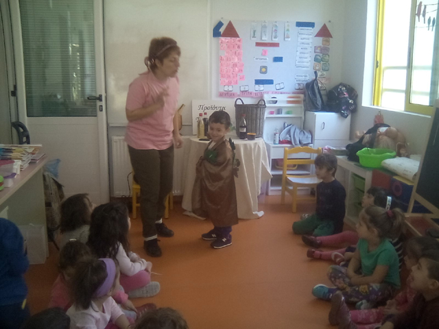 Τα παιδιά γνώρισαν τον μύθο του Οινέα και του Διονύσου, είδαν και γεύτηκαν την οικογένεια του σταφυλιού και βγάλανε τον δικό τους μούστο και φτιάξανε .. μουστοκούλουρα!