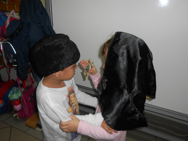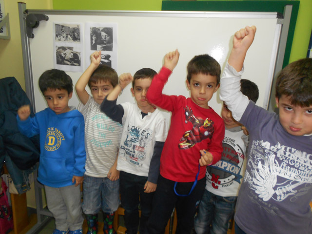Τα παιδιά (του Ν1α’)  χωρίζονται σε ομάδες,(κυρίως δυάδες). Επιλέγουν μια εικόνα της εποχής, όπου πρόσωπα και εκφράσεις είναι ξεκάθαρα, κατονομάζουν τα συναισθήματα που απορρέουν από τις εικόνες . Οι ομάδες επιλέγουν εποπτικά αντικείμενα και ενδυματολογικά στοιχεία, αυτοσχεδιάζουν και αποδίδουν τα στιγμιότυπα των φωτογραφιών και τα συναισθήματα της εικόνας πραγματοποιώντας σιωπηρή δραματοποίσηση.