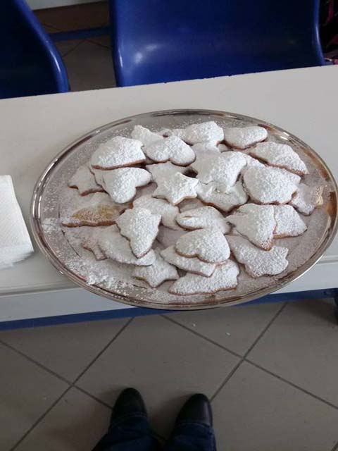 Η δασκάλα μάς έφερε τα υλικά και εμείς ακολουθώντας πιστά τη συνταγή εκτελέσαμε τις οδηγίες και απολαύσαμε στο τέλος ένα υπέροχο γευστικά αποτέλεσμα! Φυσικά τα πασπαλίσαμε με ζάχαρη άχνη, για να μοιάζουν “χιονισμένα“. Καλά Χριστούγεννα σε όλους!!!