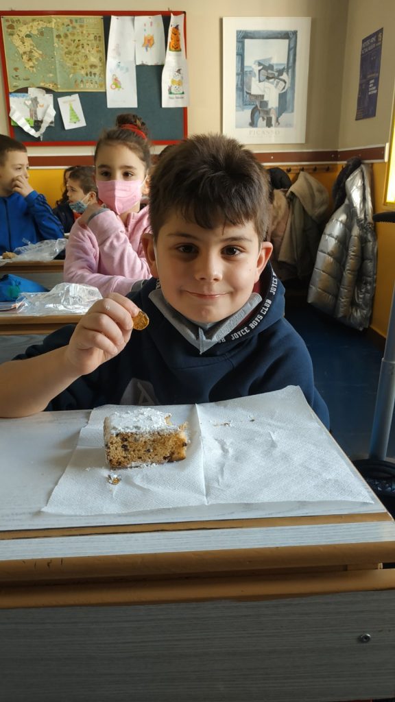 Σήμερα, 14/1/2022 κόψαμε τη βασιλόπιτα της τάξης μας. Ο τυχερός, που κέρδισε το φλουρί, ήταν ο Κωνσταντίνος. Εμείς και η δασκάλα μας, σας ευχόμαστε ευτυχισμένο το 2022, με υγεία και πολλές χαρούμενες στιγμές.