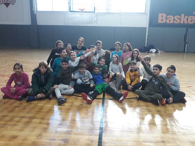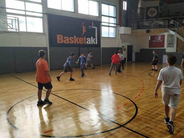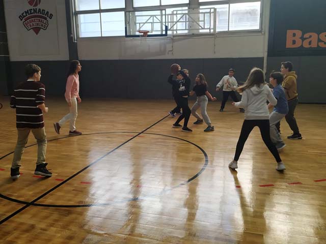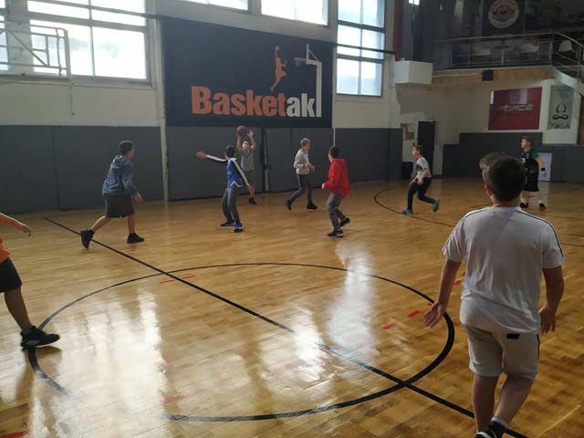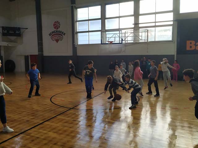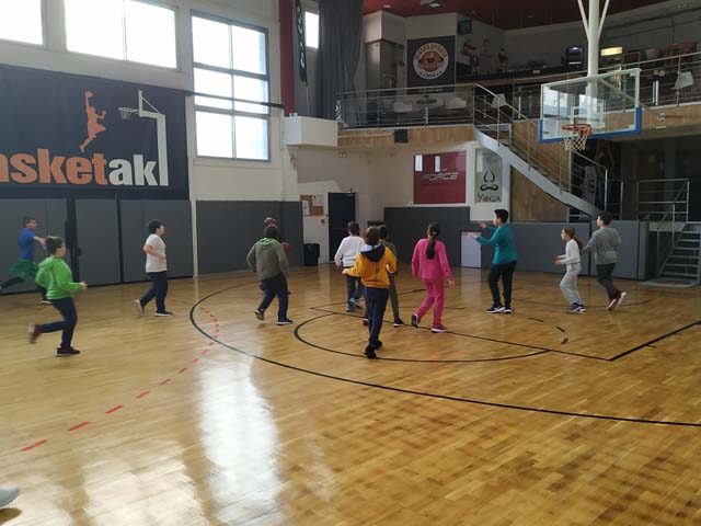 Στις 12:00 οι γυμναστές μας μπήκαν στην τάξη και μας οδήγησαν στο κλειστό του μπάσκετ στην οδό Θεμισκύρας. Εκεί υπήρχαν δύο παιδιά τα οποία έκαναν ατομική προπόνηση. Ευτυχώς σε λίγα λεπτά θα τελείωναν. Πήγαμε στους πάγκους μας, βγάλαμε τα μπουφάν και αρχίσαμε την προθέρμανση. Αφού είχαμε “ζεσταθεί” άρχισε το ματς. Παίζαμε επί μία ώρα και όλα ήταν υπέροχα. Το παιχνίδι ήταν γεμάτο και απολαυστικό. Ήταν μια αξέχαστη μέρα. Περάσαμε όμορφα και στο τέλος  μας απένειμαν το κύπελο της νίκης!