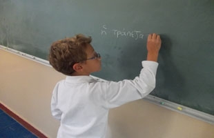 Στα πλαίσια του γλωσσικού μαθήματος προσπαθήσαμε να κάνουμε μια πρώτη προσέγγιση της αρχαίας ελληνικής γλώσσας, συνδέοντάς την με τη νέα ελληνική . Οι μαθητές γνώρισαν ορισμένες αρχαίες ελληνικές λέξεις και ενεπλάκησαν σε γλωσσικές διαδραστικές ασκήσεις. Το απόλαυσαν πολύ!