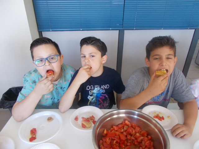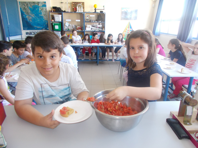 Με πολλή όρεξη ανασκουμπωθήκαμε και ξεκινήσαμε την εκτέλεση της συνταγής, το αποτέλεσμα της οποίας μας ικανοποίησε όλους. Στη συνέχεια, συζητήσαμε για τη θρεπτική αξία των χυμών, που μπορούμε να προμηθευτούμε, ώστε να επιλέγουμε και να καταναλώνουμε αυτόν, που είναι πιο ωφέλιμος για τον οργανισμό μας και τέλος παίξαμε με την πυραμίδα της Μεσογειακής διατροφής, που υπάρχει στο εργαστήρι Φυσικών Επιστημών του σχολείου μας. Σίγουρα ήταν ένα από τα πιο εύγευστα μαθήματα που έχουμε παρακολουθήσει!