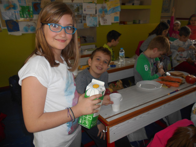 Χωρισμένοι σε τριάδες (υδατάνθρακες, βιταμίνες, πρωτεΐνες), ετοιμάσαμε διατροφικές επιλογές, ώστε να περιλαμβάνουν στη σωστή αναλογία κάθε μια από τις ομάδες τροφίμων θέτοντας σε πρακτική εφαρμογή όσα μέχρι τώρα είχαμε διδαχθεί θεωρητικά. Στη συνέχεια, συζητήσαμε για τη θρεπτική αξία των χυμών, που μπορούμε να προμηθευτούμε, ώστε να επιλεγούμε και να καταναλώνουμε αυτόν, που είναι πιο ωφέλιμος για τον οργανισμό μας. Σίγουρα ήταν ένα από τα πιο εύγευστα μαθήματα, που έχουμε παρακολουθήσει!