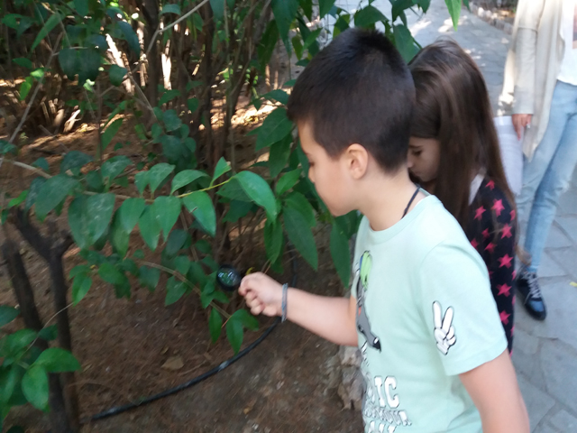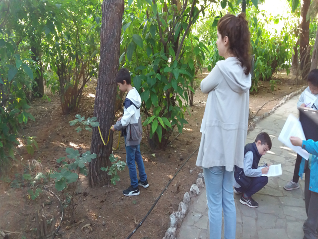 Όταν βρεθήκαμε εκεί, ακολουθήσαμε τις οδηγίες του κυρίου Βασίλη Γρηγορίου, μετρήσαμε το ύψος των δέντρων και υπολογίσαμε την ηλικία τους. Έπειτα, με τους μεγεθυντικούς φακούς παρατηρήσαμε τα φύλλα τους και σημειώσαμε όσα συλλέξαμε. Ήταν μια όμορφη εμπειρία, από την οποία αποκτήσαμε χρήσιμες γνώσεις. Περιμένουμε με ανυπομονησία το επόμενο μάθημα!
