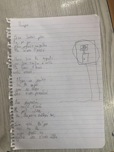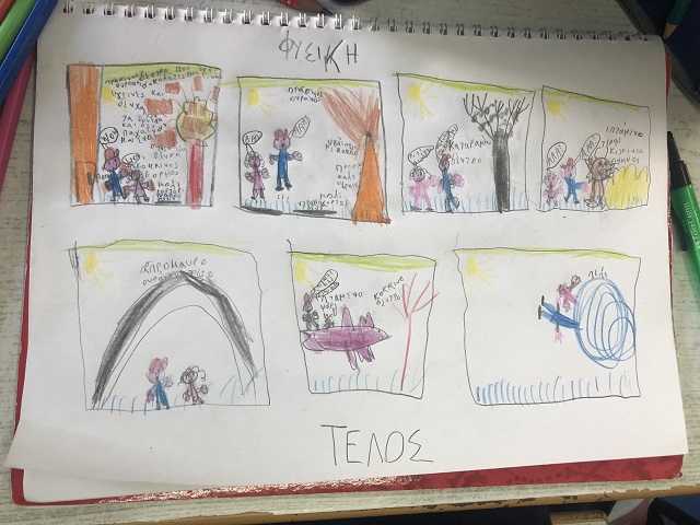 Με την Γ’ τάξη μελετάμε τα δάση διαθεματικά. Ευκαιρία να περιγράψουμε ποια είναι τα μέρη ενός τέτοιου πολύπλοκου συστήματος, μέσω και της τέχνης: οι μαθητές και μαθήτριές μας έπρεπε να γράψουν μια ταξιδιωτική περιγραφή, ένα ποίημα, ένα κόμικ, ένα σχέδιο, προκειμένου να αναφέρουν τι θα συναντούσαν σε ένα φανταστικό (μη ρεαλιστικό) δάσος!