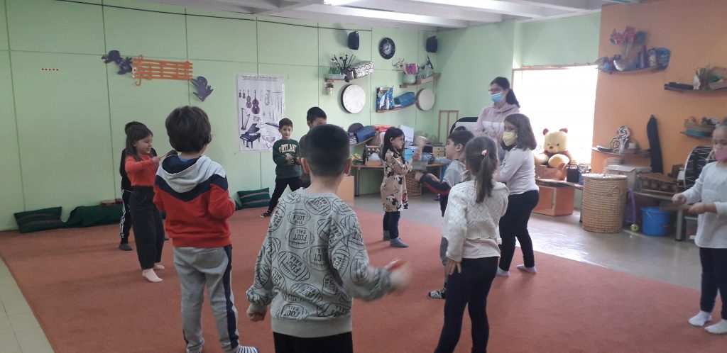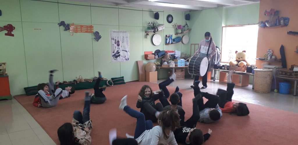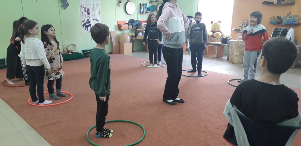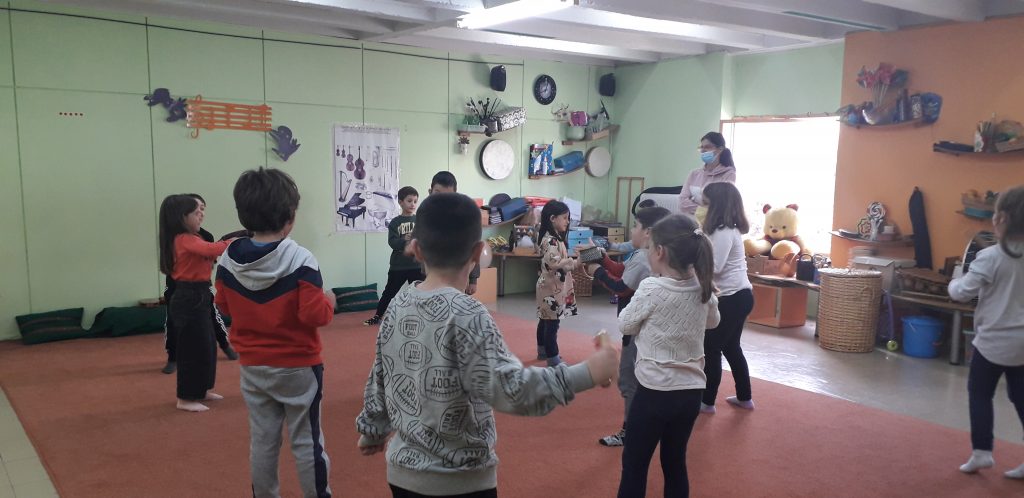 Χωρίς να χάσουμε χρόνο, δύο ευγενικές κυρίες μας χώρισαν σε ομάδες και πραγματοποιήσαμε διάφορες μουσικοκινητικές δραστηριότητες με θέμα : “Κυκλοφορούμε στην πόλη”. Μέσα από την κίνηση και την μουσική μάθαμε σημαντικά πράγματα για την οδική κυκλοφορία. Περάσαμε υπέροχα και ανυπομονούμε για την επόμενή μας επίσκεψη.