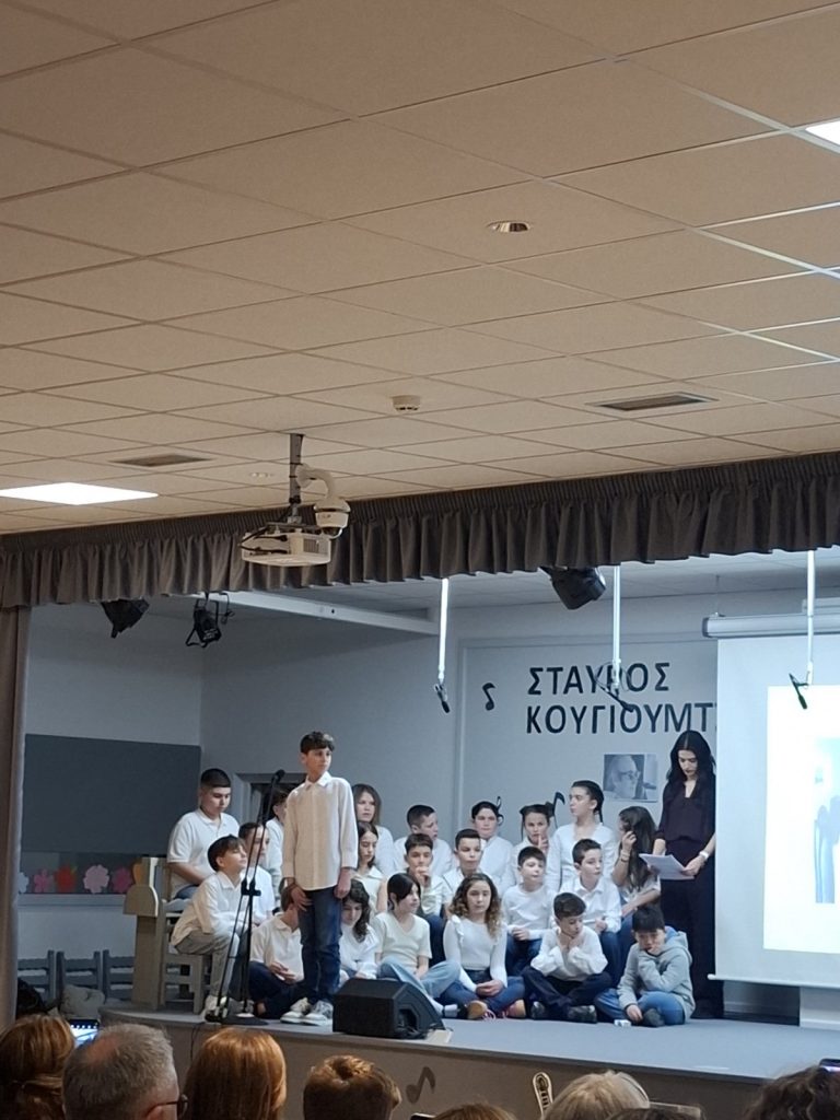 Το Σάββατο 28 Μαρτίου 2026, πραγματοποιήθηκε στο θέατρο του σχολείου μας η μουσική ημερίδα για το σχ. έτος 2025/2026. Οι μαθητές της Α’ τάξης μας παρουσίασαν ένα αφιέρωμα στους σπουδαίους ποιητές Οδ. Ελύτη και Γ. Ρίτσο, τα παιδιά της Γ’ τάξης ένα αφιέρωμα στον ελληνικό κινηματογράφο και συγκεκριμένα στις κωμωδίες του ’60, ενώ οι μαθητές της Ε’ τάξης τραγούδησαν συνθέσεις του κορυφαίου Σταύρου Κουγιουμτζή!