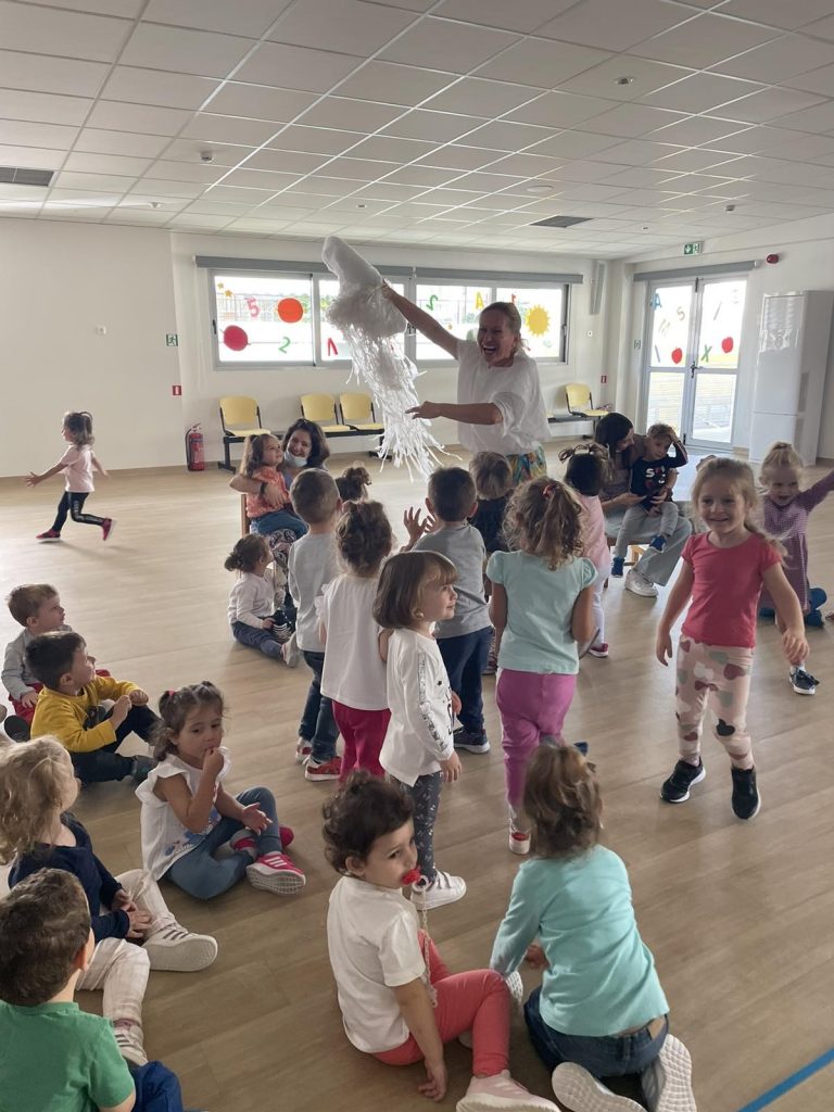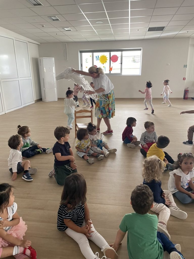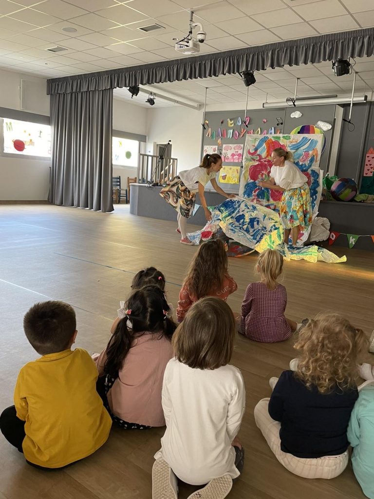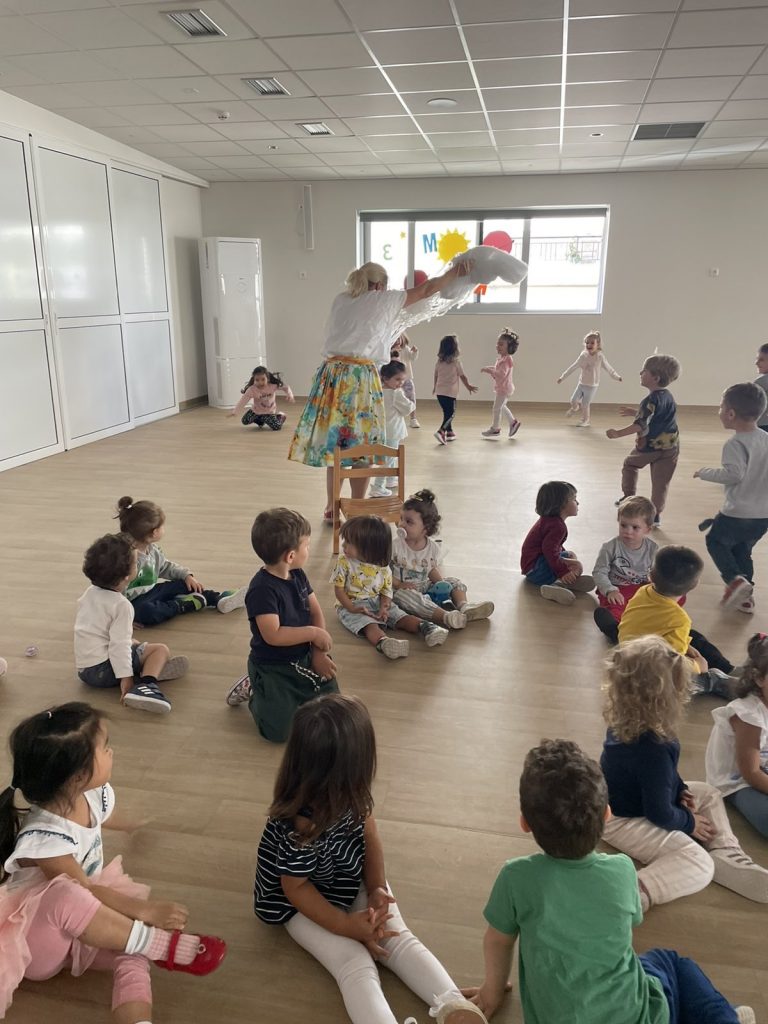 Την Τετάρτη 5 Οκτωβρίου επισκέφθηκαν το σχολείο μας οι «Α ΜΠΕ μπα μπλε». Μας ταξίδεψαν στον κόσμο των χρωμάτων. Παίξαμε, χορέψαμε και μαζί τους μάθαμε τα χρώματα. Τα παιδιά συμμετείχαν διαδραστικά, ήρθαν σε επαφή με διαφορά υλικά. Είδαν και άγγιξαν καινούριες υφές. Οι γαντοκούκλες τους διηγήθηκαν ιστορίες, τι συμβαίνει όταν τα χρώματα μπερδεύονται και έτσι δημιουργήσαμε τα σύνθετα χρώματα. Το ταξίδι μας τελείωσε κυνηγώντας τα σύννεφα και βλέποντας από ψηλά τα χρώματα.