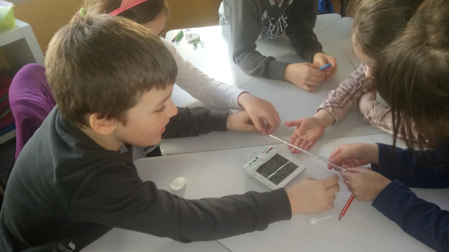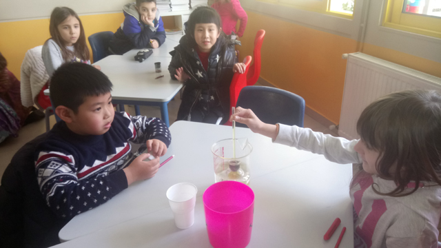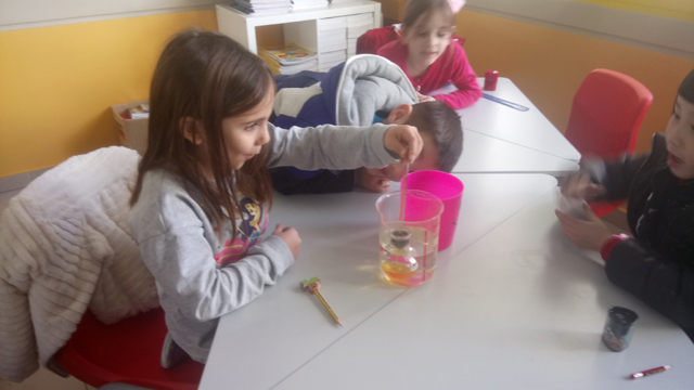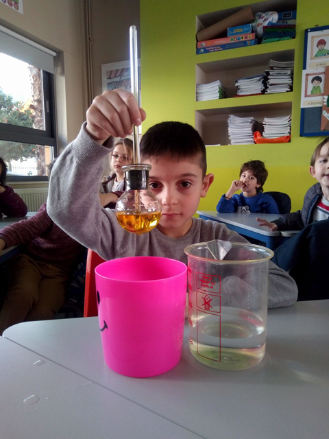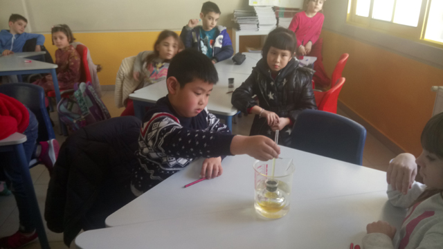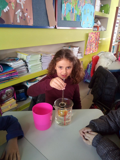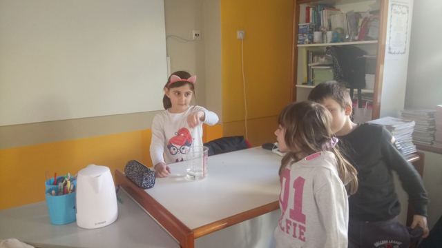 Εντοπίσαμε τη διαφορά τους μέσα από απλά παραδείγματα και αναζητήσαμε την παρουσία τους στην καθημερινή ζωή. Έπειτα για να κατανοήσουμε καλύτερα την έννοια της θερμότητας φτιάξαμε ένα αυτοσχέδιο θερμόμετρο και κάναμε μετρήσεις. Παρατηρώντας τη μεταφορά της θερμότητας από το κρύο στο ζεστό και την αλλαγή της θερμοκρασίας ο ενθουσιασμός ήταν μεγάλος.