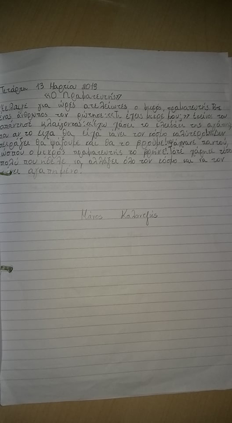 Πριν λίγο καιρό με τη δασκάλα μας και τους συμμαθητές μας διαβάσαμε και επεξεργαστήκαμε στην τάξη μας το απόσπασμα “Ο παράξενος πραματευτής“ της Δ. Ζωής Βαλάση.