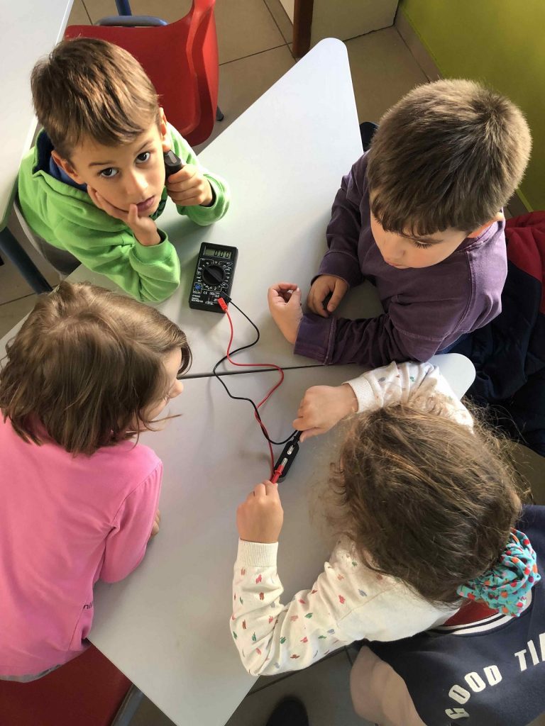 Οι μικροί επιστήμονες και επιστημόνισσες της Α’ δημοτικού, με τη βοήθεια του συνεργάτη μας Δρ. Βασίλη Γρηγορίου, ξεκινούν το ταξίδι τους στον κόσμο της επιστήμης. Στο πρώτο μάθημα διαπίστωσαν ότι όλες οι μπαταρίες έχουν δύο πόλους και στη συνέχεια μέτρησαν την ικανότητα τους να ανάβουν λαμπάκια!