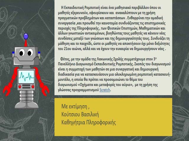 Σας παραθέτουμε επιστολή της Καθηγήτριας Ρομποτικής και φωτογραφίες της ομάδας…