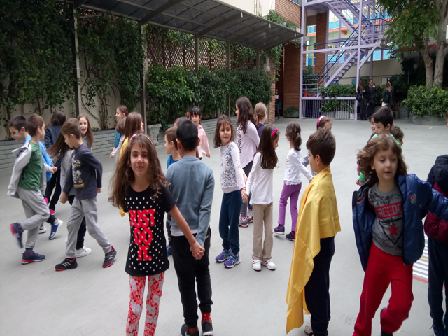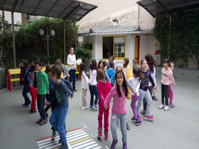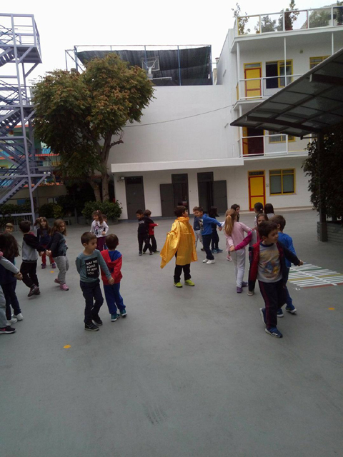 Έτσι, τη Δευτέρα, 30 Οκτωβρίου 2017 στα πλαίσια του μαθήματος “Ο Ήλιος και η ζωή μας“, στη μελέτη περιβάλλοντος, βγήκαμε και τα δύο τμήματα στο προαύλιο του σχολείου μας και παίξαμε σε παιχνίδι ρόλων το παιχνίδι εναλλαγής μέρας – νύχτας. Χωρίστηκαν σε ζευγάρια και πιάστηκαν πλάτη με πλάτη. Στη μέση ήταν ο Ήλιος. Τα ζευγάρια σχημάτισαν έναν κύκλο γύρω από αυτόν και γύρω από τον εαυτό τους. Όταν άκουγαν τον ήχο του ταμπουρίνου, όσα έβλεπαν τον Ήλιο φώναζαν “μέρα“ , ενώόσα δεν τον έβλεπαν φώναζαν “νύχτα“. Μεσά από αυτό το παιχνίδι προσπαθήσαμε να προσεγγίσαμε βιωματικά τη διαδικασία της δημιουργίας μέρας και νύχτας, αποδίδοντας το φαινόμενο στην περιστροφή της γης γύρω από τον εαυτό της και γύρω από τον Ήλιο. Οι μικροί μαθητές το διασκέδασαν πολύ.