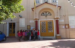 Σήμερα πήγαμε με την τάξη μας στον ιερό ναό του Αγίου Κωνσταντίνου, που βρίσκεται στη συνοικία μας. Αφορμή γι΄αυτήν την επίσκεψη ήταν το κεφάλαιο Η ΣΥΝΟΙΚΙΑ ΜΑΣ , ένα κείμενο που επεξεργστήκαμε στην τάξη για τον προσανατολισμό και το κεφάλαιο ΤΑ ΣΗΜΕΙΑ ΤΟΥ ΟΡΙΖΟΝΤΑ του βιβλίου της Μελέτης Περιβάλλοντος. Πήραμε μαζί μας μια πυξίδα και ένα χαρτί . Εντοπίσαμε το ιερό της εκκλησίας και το σχετίσαμε με την Ανατολή.