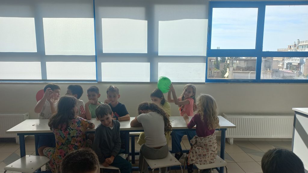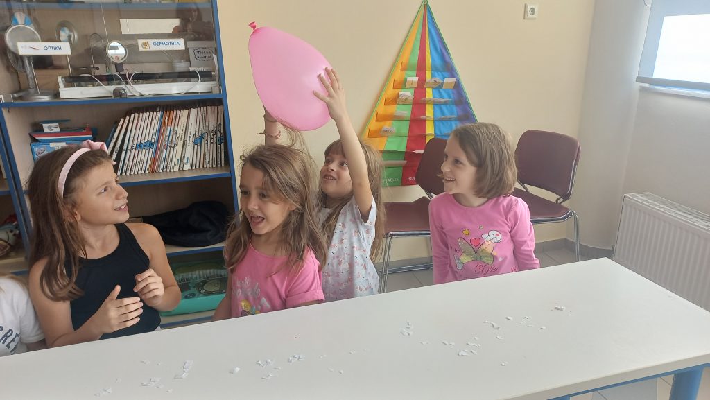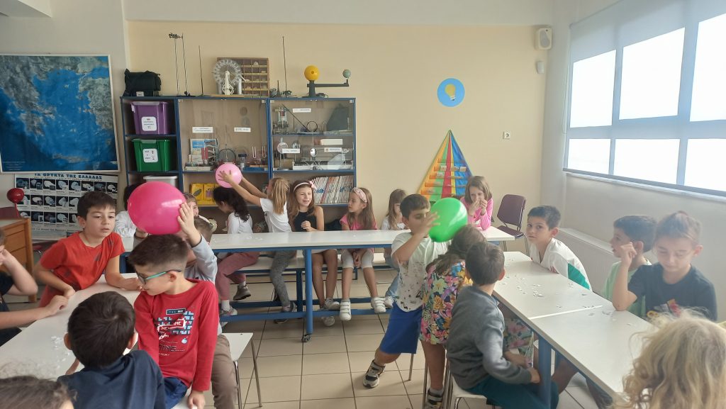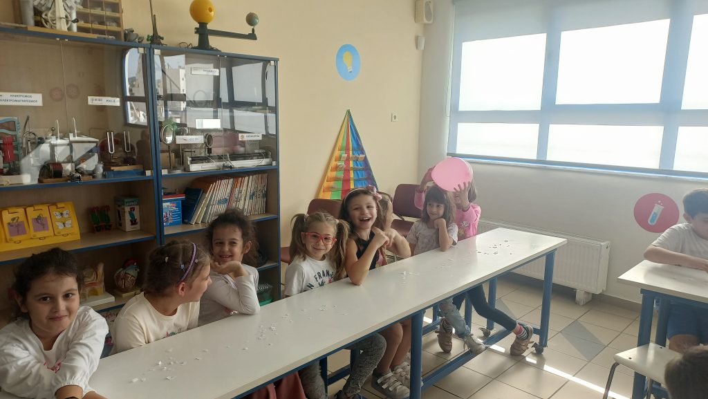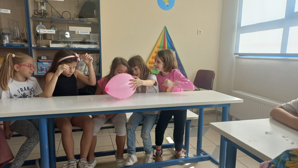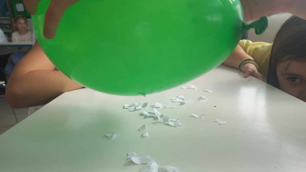Σήμερα, Παρασκευή 3/11/2023, οι μαθητές του Β1 άρχισαν για φέτος τα πειράματα φυσικής! Μέσω παιχνιδιού έμαθαν για τον στατικό ηλεκτρισμό. Πήραμε ένα μπαλόνι και το τρίψαμε στα μαλλιά μας αλλά και σε μια μάλλινη μπλούζα. Παρατηρήσαμε ότι το ”ηλεκτρισμένο” πλέον μπαλόνι κολλάει στον τοίχο ενώ μπορεί να έλξει άλλα μικρά χαρτάκια!