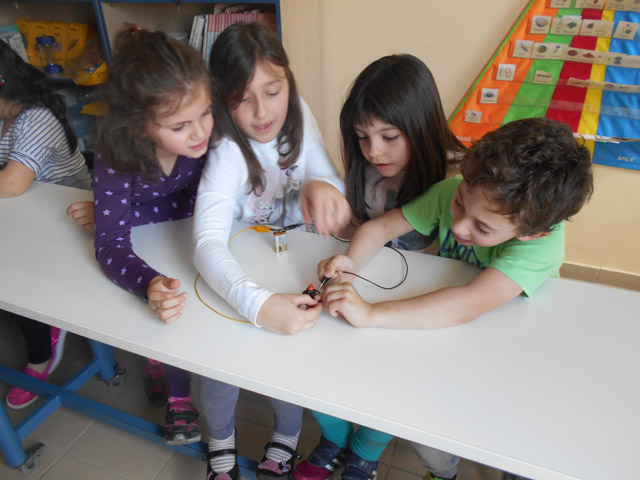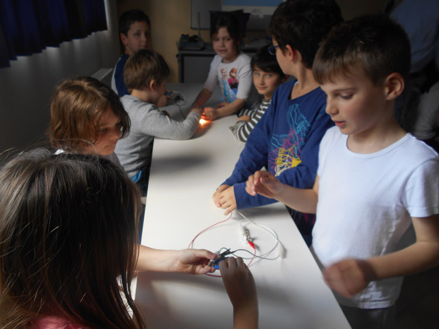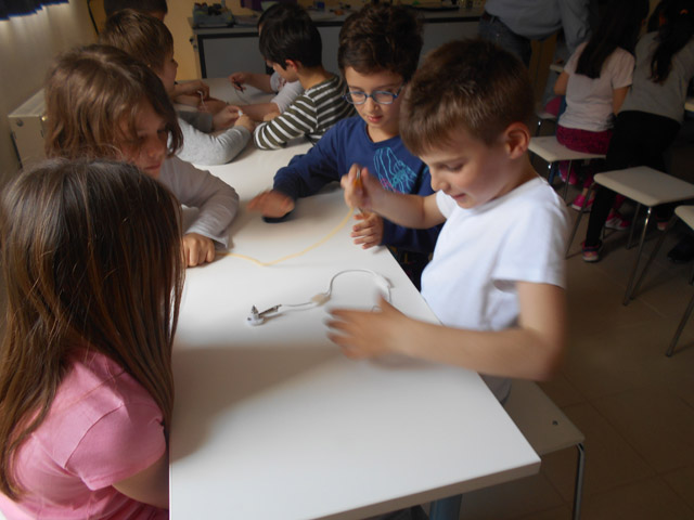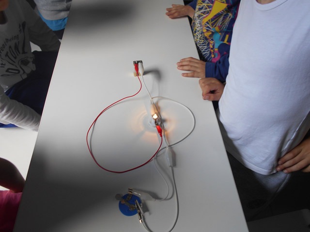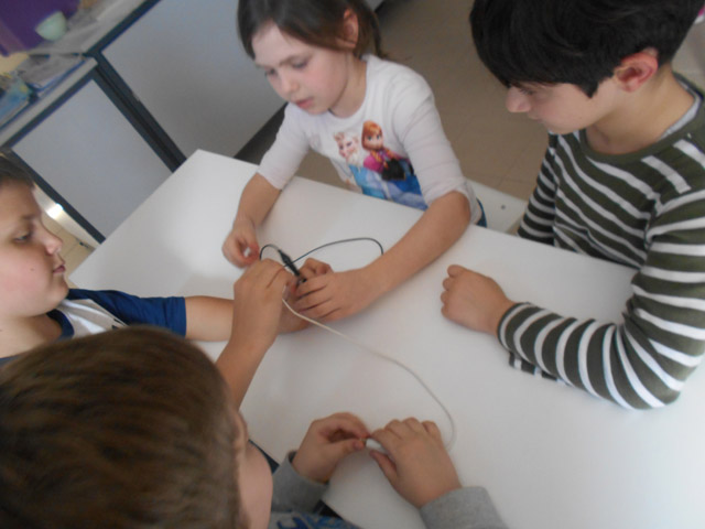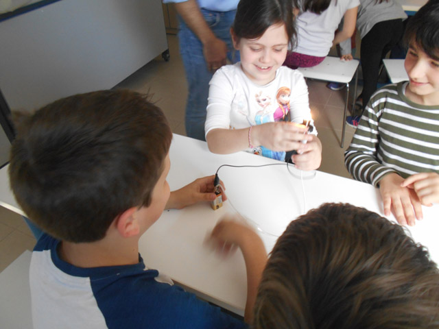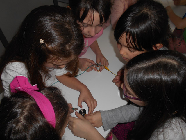 Σήμερα, Τρίτη 12 Απριλίου 2016, στο εργαστήρι μάθαμε για τον ηλεκτρισμό, τρίβοντας τα μαλλιά μας, φορτίζοντας καλαμάκια και φτιάχνοντας κυκλώματα με διακόπτη.