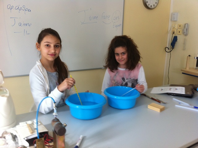 Επισκεφθήκαμε το εργαστήριο Φυσικών Επιστημών, καταγράψαμε τις παρατηρήσεις μας και διατυπώσαμε συμπεράσματα, που περιελάμβαναν τις έννοιες: θερμοκρασία, υλικό, ποσότητα.