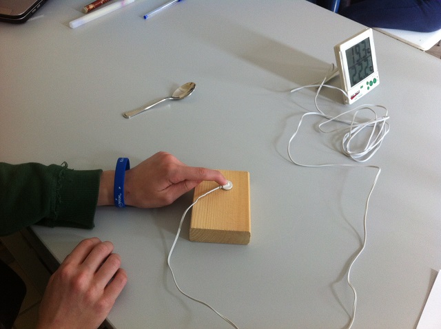 Σήμερα, Δευτέρα 20 Φεβρουαρίου είχαμε την ευκαιρία να ολοκληρώσουμε την ενότητα, που αφορά τη θερμοκρασία των σωμάτων, εκτελώντας δύο πειράματα που σκοπό είχαν να μας βοηθήσουν να επιβεβαιώσουμε ή να απορρίψουμε τις αρχικές μας προβλέψεις.