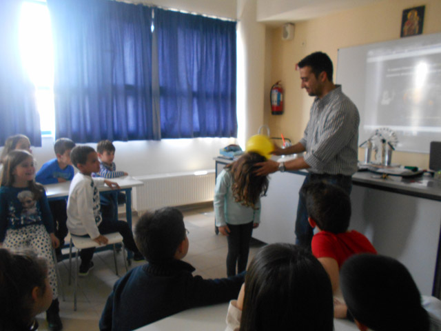 Σήμερα, Τετάρτη 13 Απριλίου 2016, οι μαθητές του νηπιαγωγείου, επισκέφθηκαν το εργαστήριο Φυσικής του σχολείου μας, στα πλαίσια της 3ης δραστηριότητας μετάβασης στο Δημοτικό.