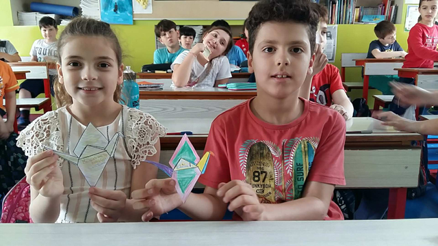 Το κορίτσι αυτό ακολουθούσε την ιαπωνική παράδοση, που ήθελε όποιον παθών έφτιαχνε 1.000 γερανούς να μπορεί να ελπίζει σε ίαση. Έτσι, λοιπόν, κλείσαμε σήμερα, Παρασκευή (18/5/2018) την εβδομάδα μας με μηνύματα ειρήνης, που τα καταγράψαμε στους γερανούς της μικρής Σαντάκο.