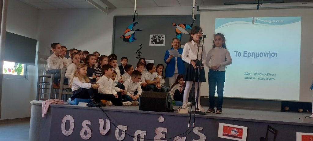 Το Σάββατο 20 Απριλίου 2024 πραγματοποιήθηκε μουσική ημερίδα στα εκπαιδευτήριά μας. Οι μαθητές και οι μαθήτριες της Α’ τάξης παρουσίασαν ένα μουσικό αφιέρωμα στον Οδυσσέα Ελύτη, οι μαθητές και οι μαθήτριες της Γ’ τάξης στον Νίκο Γκάτσο ενώ η Ε’ τάξη είχε ετοιμάσει ένα αφιέρωμα στον Ελληνικό κινηματογράφο και συγκεκριμένα στις κωμωδίες του ’60 και του ’70.