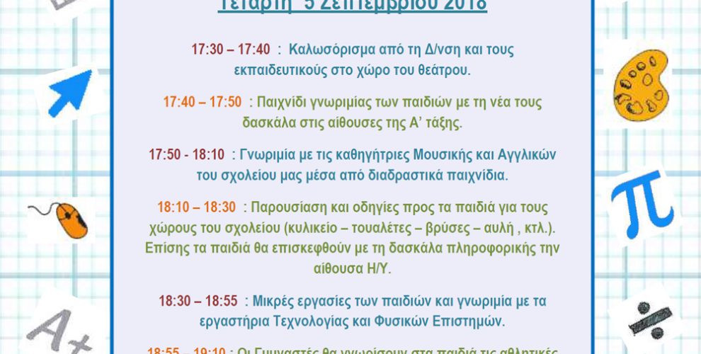 ΠΡΟΓΡΑΜΜΑ ΗΜΕΡΑΣ ΓΝΩΡΙΜΙΑΣ ΓΙΑ ΤΟΥΣ ΜΑΘΗΤΕΣ ΤΗΣ Α’ ΤΑΞΗΣ