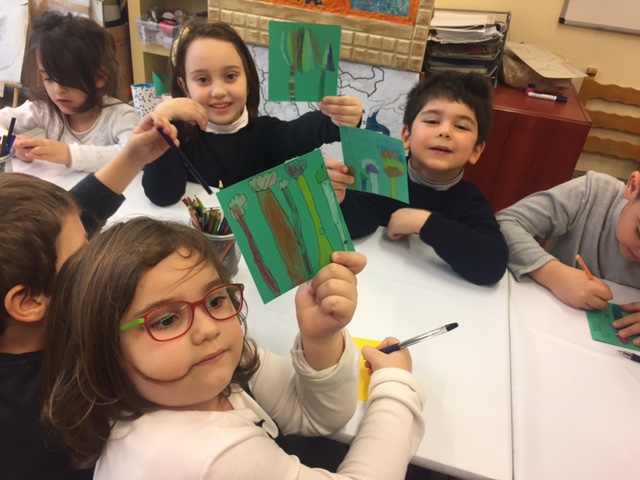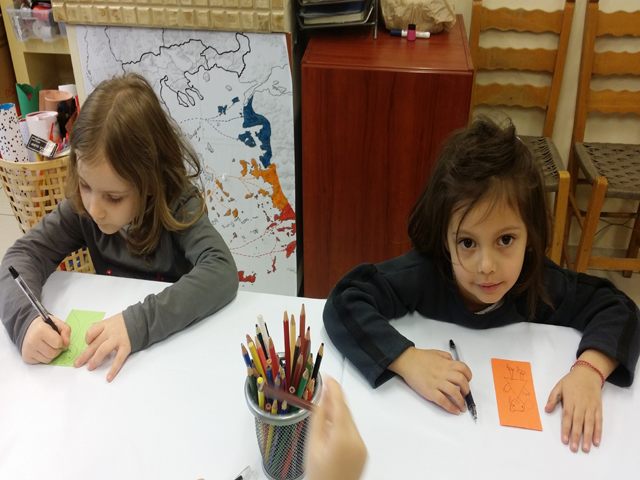 Με την υποστήριξη της καθηγήτριας εικαστικών, συνεργάστηκαν σε μικρές ομάδες και δημιούργησαν αφίσα με μηνύματα για το περιβάλλον. Σκοπός μας ήταν να γνωρίσουν τα παιδιά το χώρο του εργαστηρίου, να έλθουν σ’ επαφή με τη δασκάλα εικαστικών και κατ’ επέκταση να διασφαλιστεί η ομαλή μετάβαση από το ανοικτό και ευέλικτο πρόγραμμα του νηπιαγωγείου στο συστηματικά δομημένο και οργανωμένο περιβάλλον του δημοτικού σχολείου.