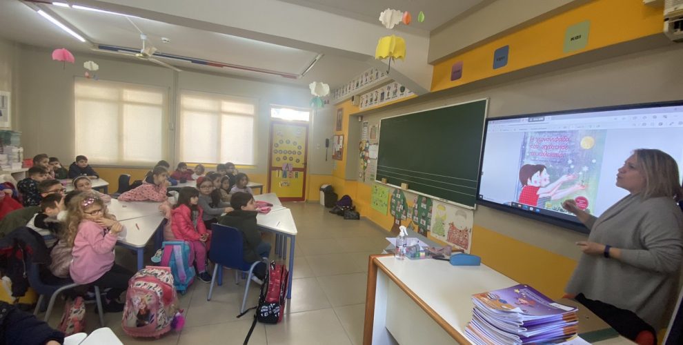 Ολοκληρώθηκε σήμερα, Τετάρτη 7 Ιανουαρίου, η δεύτερη, από τις τέσσερις συναντήσεις, των νηπίων με τα «πρωτάκια» του δημοτικού, στο πλαίσιο «δραστηριοτήτων μετάβασης». Οι δράσεις αυτές, όπως έχει προαναφερθεί, έχουν στόχο την μετάβαση των παιδιών από το ευέλικτο και διαθεματικό πρόγραμμα του νηπιαγωγείου, στο συστηματικότερο πρόγραμμα των τάξεων του δημοτικού. Η σημερινή συνάντηση λοιπόν, περιλαμβάνει την αφήγηση ενός παραμυθιού «Η χιονονιφάδα που αγάπησε το καλοκαίρι», στην οποία συγκαταλέγονται επιμέρους δραστηριότητες. Την σειροθέτηση των βασικών σημείων του και την εικονογράφηση μιας αγαπημένης σκηνής των παιδιών, από το ίδιο το παραμύθι. Βασικοί στόχοι των δραστηριοτήτων που σχεδιάστηκαν ήταν, πρωτίστως, η άσκηση δεξιότητας της προσεκτικής ακρόασης, και ο έλεγχος αυτής, μέσω επεξηγηματικών ερωτήσεων και σειροθέτησης των κεντρικών σημείων του παραμυθιού από τα παιδιά, η ανάπτυξη της επικοινωνιακής ικανότητας μεταξύ των ολιγάριθμων ομάδων που δημιουργήθηκαν και τέλος, η καλλιέργεια δεξιότητας αναδιήγησης σημείων του παραμυθιού, μέσω της ζωγραφικής. Οι μεγαλύτεροι μαθητές έδειξαν να αγκαλιάζουν και να υποδέχονται με χαρά τους μικρότερους φίλους τους, καλωσορίζοντάς τους στο «μελλοντικό» τους σχολείο. Οι μαθητές του νηπιαγωγείου από την άλλη, δεν δίστασαν να εκφράσουν τον ενθουσιασμό τους για αυτή την συνεύρεση, ανυπομονώντας για την επόμενη… που δεν αργεί!