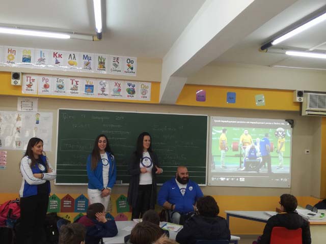 Σήμερα, Τρίτη 17 Ιανουαρίου 2017, επισκέφθηκε το σχολείο μας η πρόεδρος της ΕΘΝΟΑ, κυρία Ιλεάνα Κλοκώνη μαζί με Ολυμπιονίκες και Παραολυμπιονίκες  (Παύλος Μάμαλος, Σοφία Παπαδοπούλου, Σταυρούλα Σαμαρά και Νίκος Στέφος).