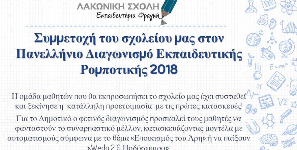 Συμμετοχή του σχολείου μας στον Πανελλήνιο Διαγωνισμό Εκπαιδευτικής Ρομποτικής 2018