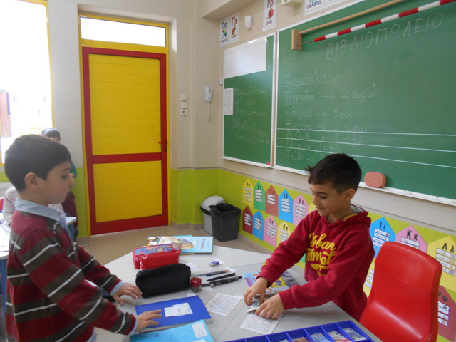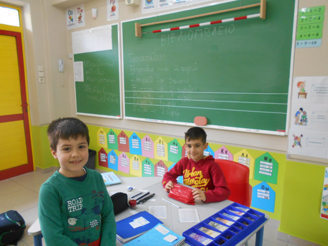Αναλάβαμε το ρόλο του πωλητή και του πελάτη και χρησιμοποιώντας απομιμήσεις νομισμάτων πραγματοποιήσαμε διάφορες συναλλαγές. Κάναμε όλοι πολύ καλή δουλειά και έτσι το βιβλιοπωλείο θα ανοίξει ξανά σύντομα…