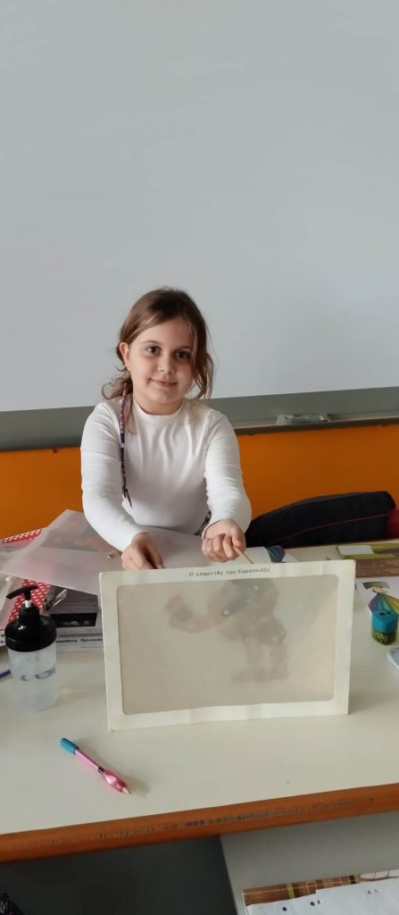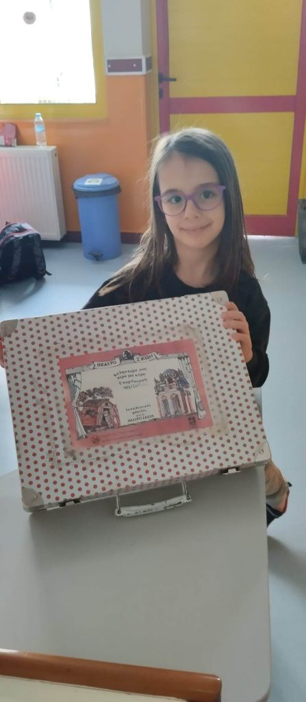 Καλησπέρα σας πέρα για πέρα! Η παράσταση αρχίζει σήμερα, Παρασκευή 27 Ιανουαρίου, μια ευχάριστη και απρόσμενη έκπληξη μας περίμενε. Μια μυστηριώδης, αινιγματική βαλίτσα εμφανίστηκε στην τάξη μας με τρόπο μαγικό και μας χάρισε υπέροχες στιγμές διασκέδασης. Από μέσα της ξεπήδησαν όλες οι φιγούρες του θεάτρου Σκιών, ένας μπερντές και πλούσιο εποπτικό υλικό. Ενθουσιασμένοι πραγματοποιήσαμε όλες τις δραστηριότητες της Μουσειοσκευής και διασκεδάσαμε με τα αστεία των αγαπημένων μας ηρώων. Το θέατρο Σκιών είναι μέρος της λαϊκής μας παράδοσης και έχουμε χρέος, αλλά και τη διάθεση να το κρατήσουμε ζωντανό.