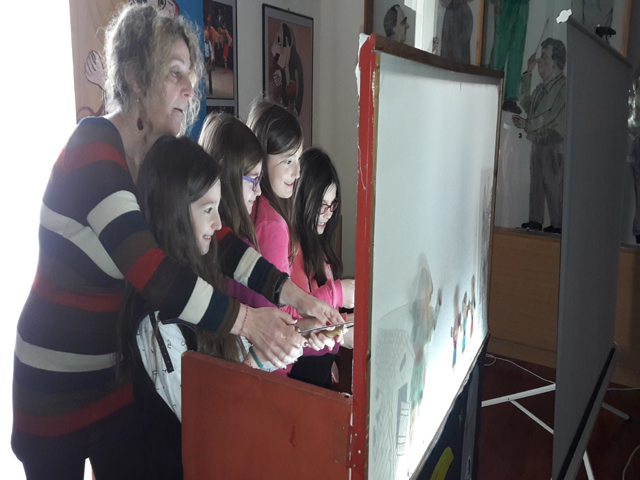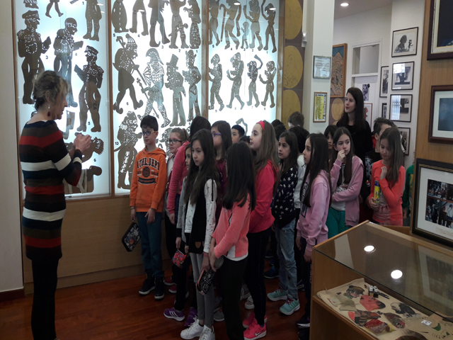 Η ξεναγός μας ήταν η κόρη του περίφημου Καραγκιοζοπαίχτη, Ευγένιου Σπαθάρη, που κατάφερε να μας μυήσει στον θαυμαστό κόσμο του θεάτρου Σκιών. Αρχικά, περιηγηθήκαμε στους χώρους του Μουσείου, όπου είχαμε την ευκαιρία να θαυμάσουμε τις εκπληκτικές φιγούρες του, αλλά και να παρακολουθήσουμε ζωντανά μια παράσταση Καραγκιόζη. Ήταν θαυμάσια! Τέλος, η ξεναγός μάς έδωσε την ευκαιρία να παίξουμε κι εμείς μια παράσταση επιλέγοντας μια φιγούρα της αρεσκείας μας. Είναι βέβαιο ότι όλοι μας περάσαμε υπέροχα, διασκεδάσαμε, ενώ ταυτόχρονα αποκομίσαμε πολύτιμες γνώσεις για το θέατρο σκιών.