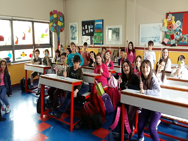 Σήμερα, Παρασκευή 7 Απριλίου 2017, μια μέρα πριν κλείσουν τα σχολεία για τις διακοπές του Πάσχα, επισκεφθήκαμε το εργαστήριο Εικαστικών, όπου φτιάξαμε τις πασχαλινές μας λαμπάδες!