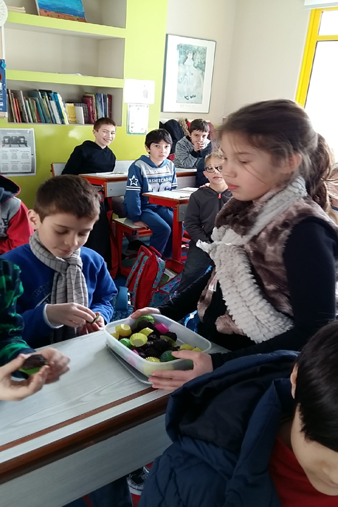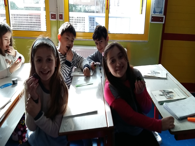 Σήμερα, Τετάρτη 24 Ιανουαρίου 2018, το κουζινοξωτικό “ξεπήδησε“ από το βιβλίο της Γλώσσας μας και επισκέφθηκε την τάξη μας, όπου έριξε τη μαγική του χρυσόσκονη και έφτιαξε λαχταριστές τρουφομπαλίτσες από σοκολάτα.