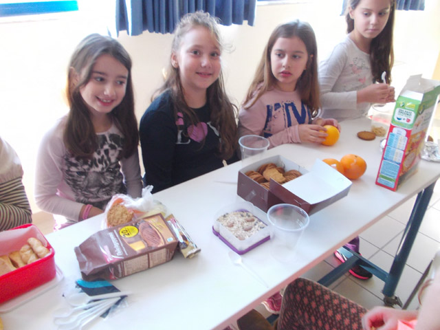 Όλοι μας φροντίσαμε να φέρουμε από το σπίτι μας διάφορες υγιεινές τροφές όπως μαύρο ψωμί, μέλι, δημητριακά, γάλα, σπιτικό κέικ, πορτοκάλια , μπανάνες , μήλα , αχλάδια! Πήγαμε, λοιπόν, στο Εργαστήριο Φυσικής και εκεί πήραμε το πρωινό μας. Ήταν μια υπέροχη βιωματική δραστηριότητα! Τώρα όλοι γνωρίζουμε από τι αποτελείται ένα υγιεινό πρωινό. Ευχαριστούμε πολύ τους γονείς των παιδιών που συνέβαλαν ενεργά στην υλοποίηση της δραστηριότητάς μας!