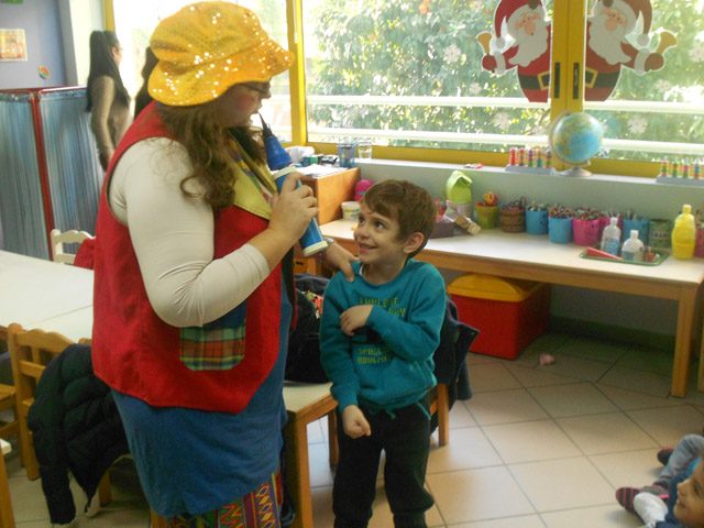 Ο κλόουν έπαιξε μαζί με τα παιδιά , έκανε ταχυδακτυλουργικά κόλπα, ενώ στο τέλος τους μοίρασε γλυκίσματα , ώστε να έχουμε ένα ευχάριστο κλείσιμο για τις χριστουγεννιάτικες διακοπές. Καλές γιορτές σε όλους!