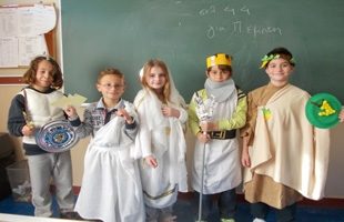 Σήμερα 22/11/2013 στην τάξη μας , δραματοποιήσαμε ένα συμβούλιο των θεών. Συμμετείχαν ο Δίας , αρχηγός των θεών, η Ήρα , ο Διόνυσος, ο Ποσειδώνας, ο Ήφαιστος και ο Άρης. Προσπαθούσαν να αποφασίσουν για την τιμωρία των ανθρώπων. Όσοι συμμετείχαμε φτιάξαμε μόνοι μας τις στολές