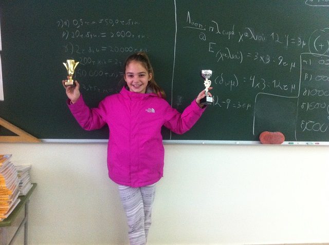 Μεγάλη διάκριση για τη μαθήτρια της Δ’ τάξης των εκπαιδευτηρίων μας, Τατιάνα Μπουγιατιώτη,η οποία κέρδισε δύο κύπελλα στους αγώνες της κατηγορίας των 11 χρονών.
