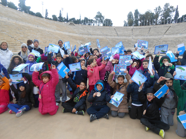Τα παιδιά μας, αφού πρώτα ξεναγήθηκαν στο ιστορικό Στάδιο επισκέφθηκαν την αίθουσα όπου φυλάσσονται εκθέματα όπως ολυμπιακές δάδες και πολλές φωτογραφίες των Ολυμπιακών αγώνων.