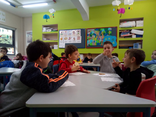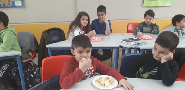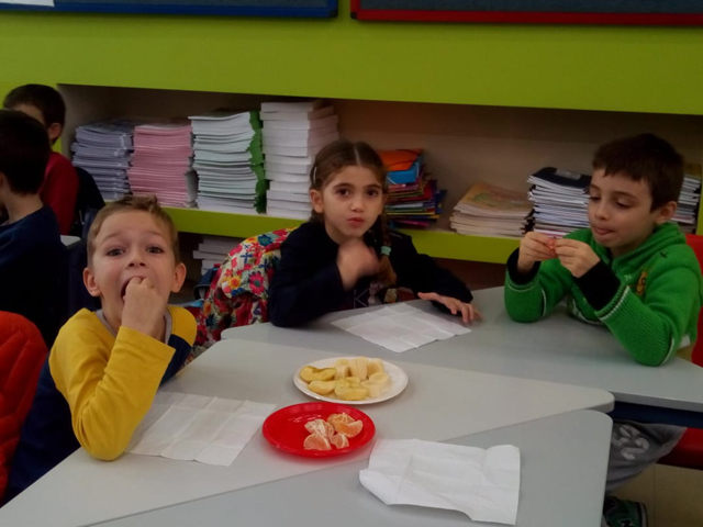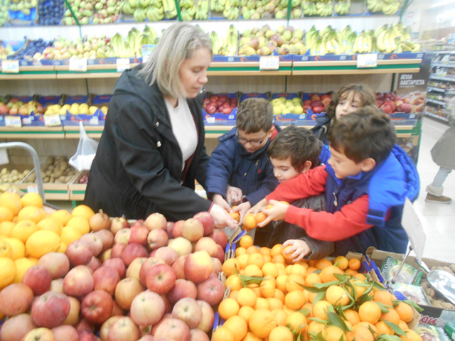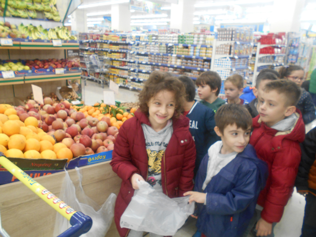 Η Α’ Δημοτικού έχει βάλει στόχο την υγιεινή διατροφή. Χτες, 15/11/18 οι μαθητές του Α1 και Α2 πήγαν στο σούπερ μάρκετ της γειτονιάς μας “ΓΑΛΑΞΙΑΣ“ και αγόρασαν φρέσκα φρούτα από το μανάβικο, φρυγανιές και ταχίνι.